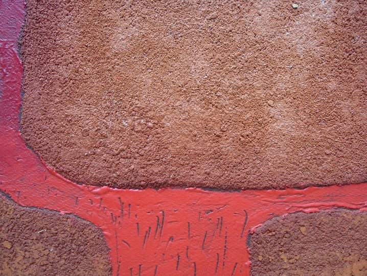Tinta grafica, polvo de ladrillo, sobre madera.